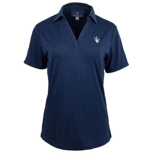 Blue Maserati women's polo Made of 62% polyester / 33% viscose / 5% spandex Maserati Trident embroidered on left chest in white Navy Blue body wit...