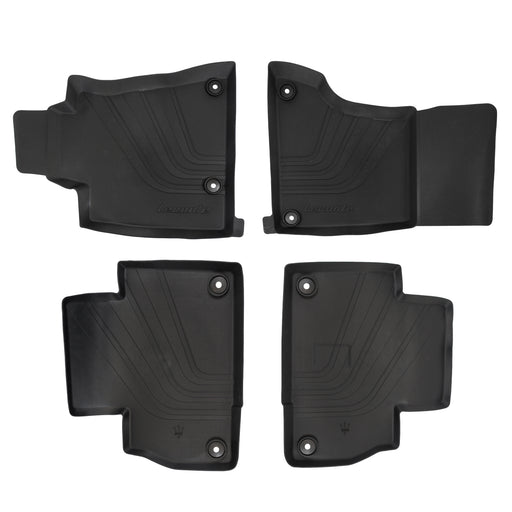 Maserati black factory fitted all weather floor mats for the Ghibli 2 pairs of mats for front and back 4 piece set Fits Ghibli model years 2014 to...