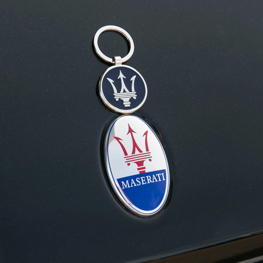 Metal circular white, navy, black, keyring Features large enameled silver trident on the front Enameled silver "Maserati" script on the back High ...