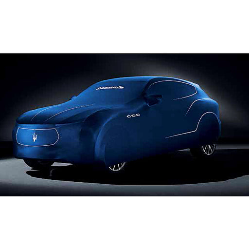 Blue indoor car cover fits the Levante Made-to-measure using a quality anti-laddering Maserati blue fabric Finished with contrasting light-gray de...