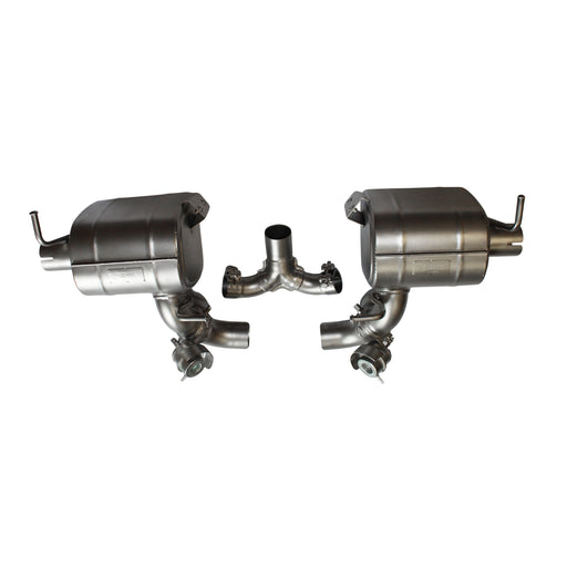 Silver titanium silencer kit for 458 Coupe and Spider Fits models 2010 to 2015 Has tone on tone "Ferrari" outline on side