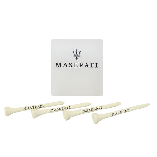 Golf tee matchbook with tees White matchbook with blue Maserati logo on front Comes with 4 white tees with blue Maserati logo
